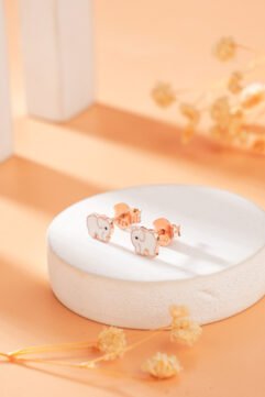 The Lucky Trunk Studs in Rose Gold: Sweet & Gentle. These enchanting Lucky Trunk Studs have a lovely, soft glow in a rose gold finish. The charming elephant design is filled with smooth white enamel, giving them a sweet, gentle look. With their trunks raised for luck, these are the perfect little friends to wear…