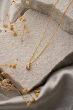 Eternal Grace – 925 Sterling Silver Gold-Plated Necklace Embrace the enduring allure of the Eternal Grace – 925 Sterling Silver Gold-Plated Pendant With Chain from Shivaya Luxe. This captivating piece is meticulously crafted from genuine 925 sterling silver, lavishly enhanced with a radiant gold plating. At its heart lies a single, prominent round brilliant-cut stone,…