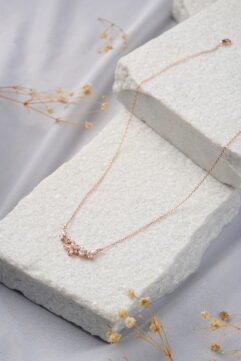 The Petal Whisper Necklace in Rose Gold: Romantic Flow. Embrace the feminine charm of the Petal Whisper Necklace in a gorgeous rose gold finish. The delicate, nature-inspired motif is meticulously set with marquise and round-cut cubic zirconia (CZ), creating sparkling petals and leaves that gently hug the collarbone. The entire design offers a romantic, understated…