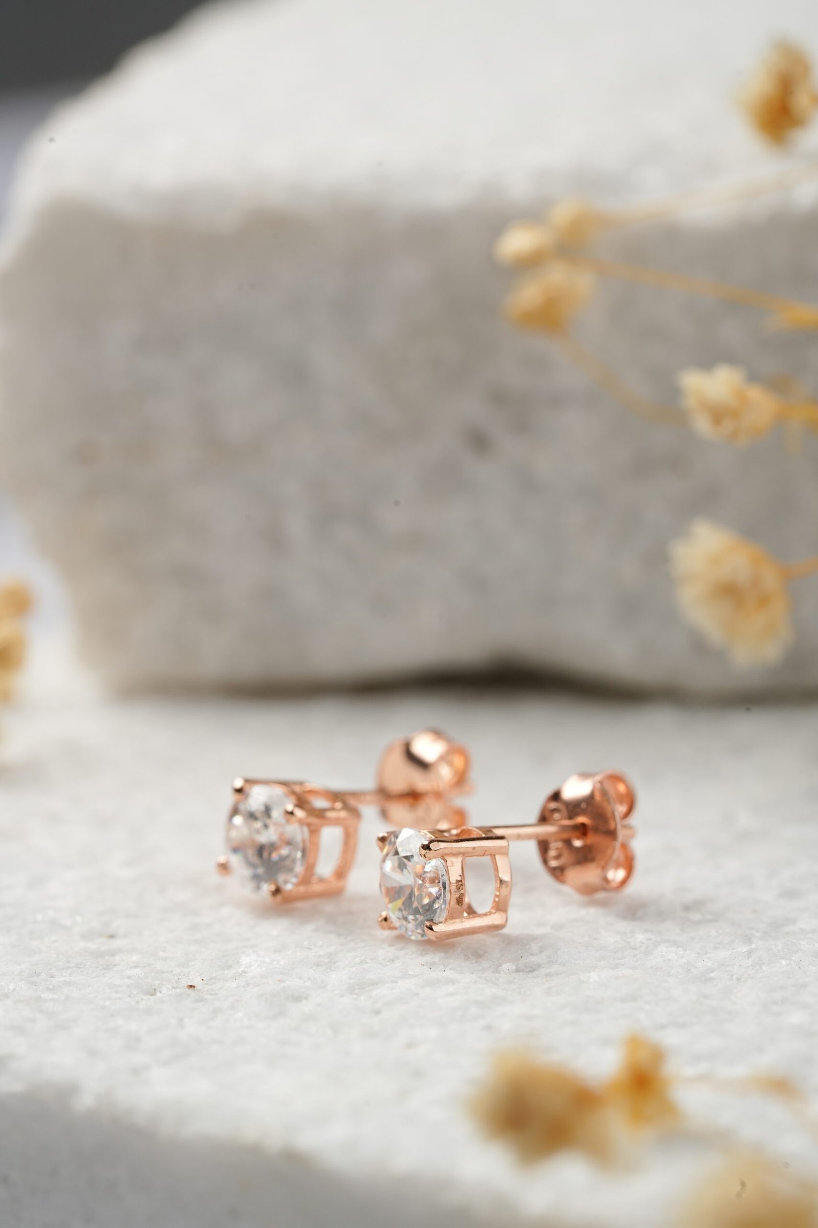 The Lumina Studs in Rose Gold: Soft Romance and Sparkle.