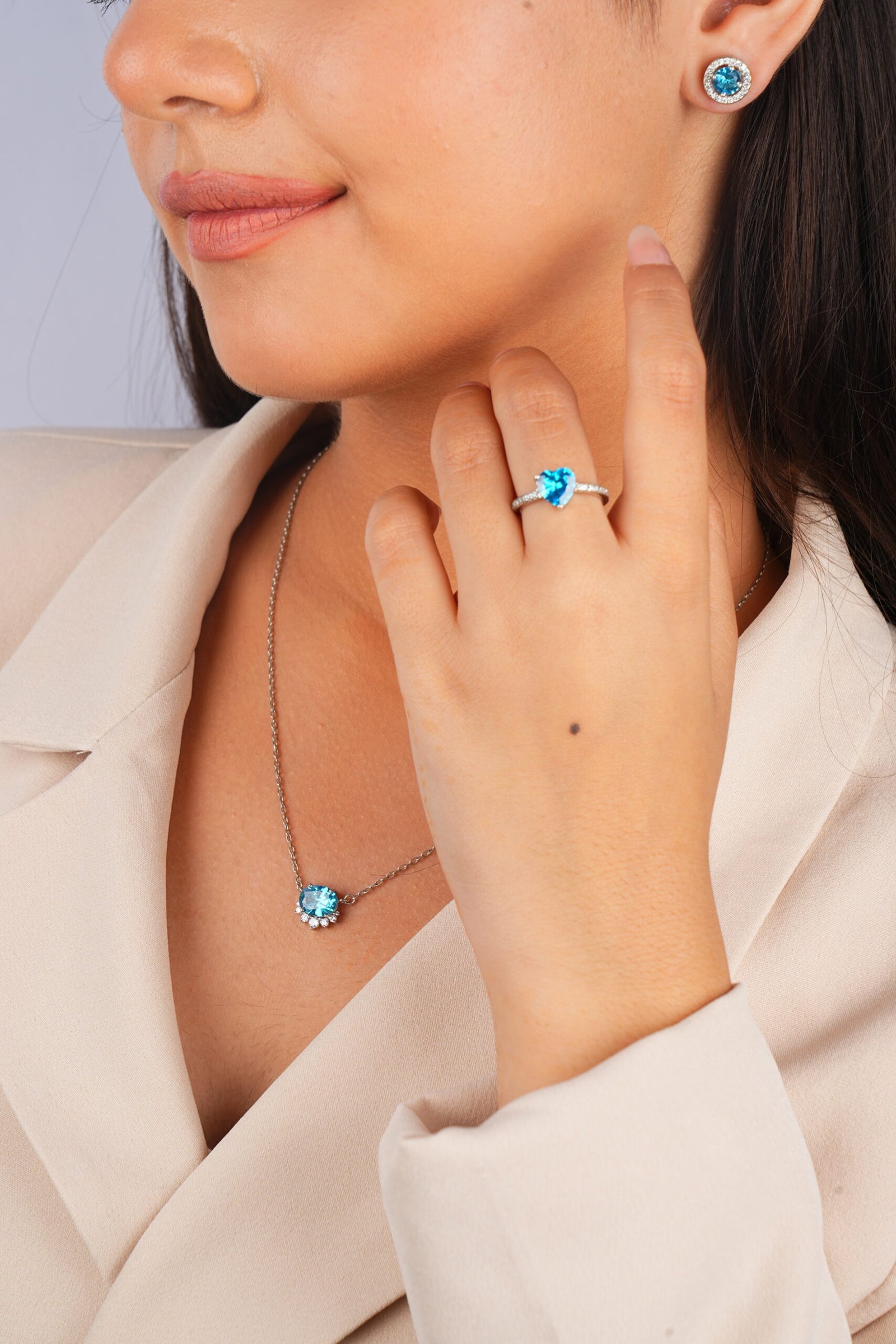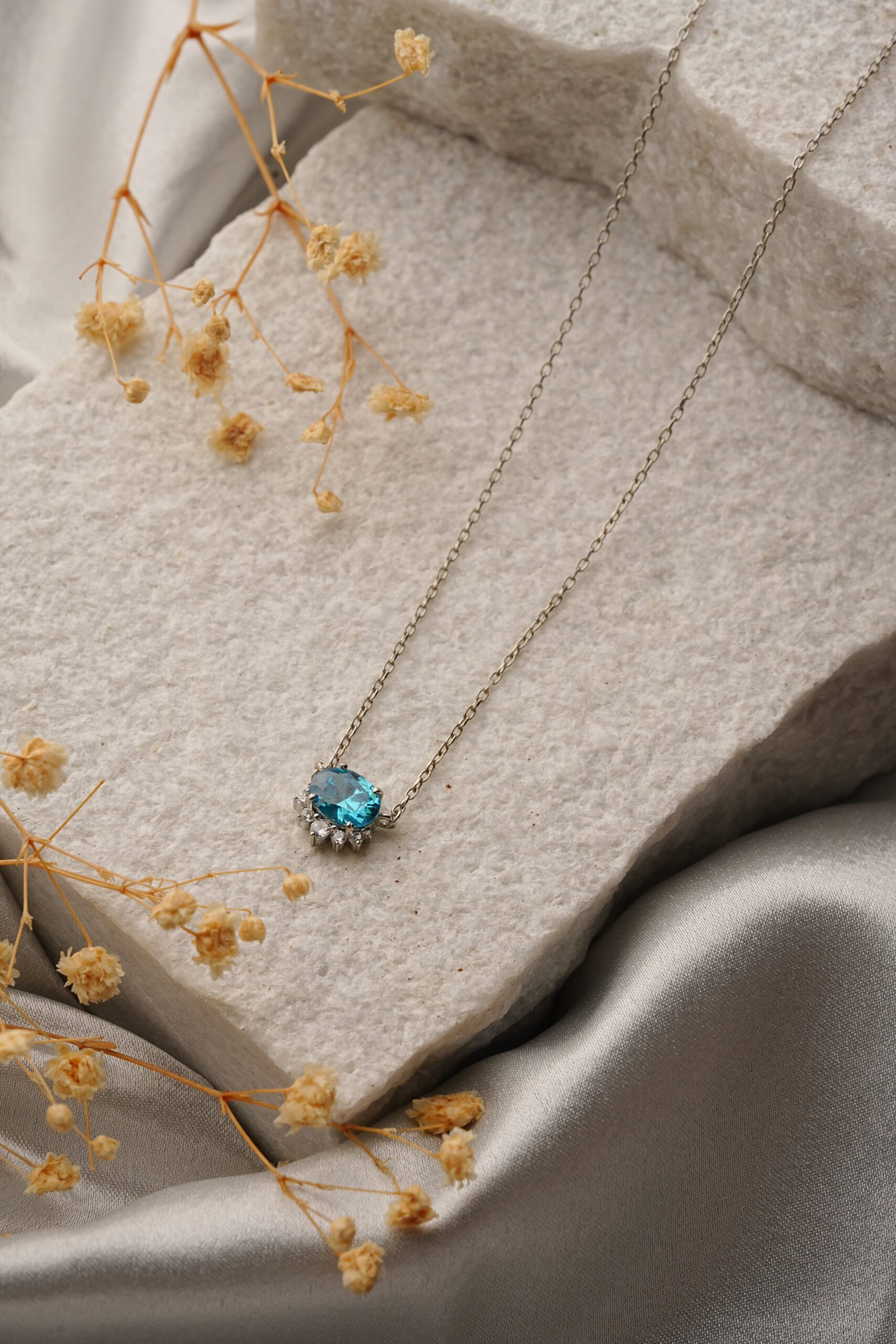 Be the first to review “Regal Bloom (Ice Blue Stone) – 925 Sterling Silver Necklace”
